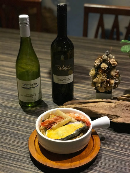 店家推薦的白酒很適合搭配魚肉跟海鮮