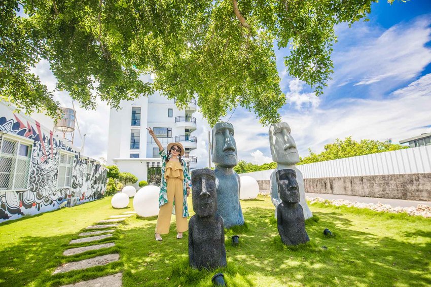再來就是小琉球朵小路北歐民宿本身就有可以拍網美照的景點,自家庭院裡就有摩艾像可以拍照,庭院也有許多可愛的擺飾,行李一丟,藍天白雲加上純白的北歐風民宿外觀,光在庭園裡我們大概就拍快一個小時了^^