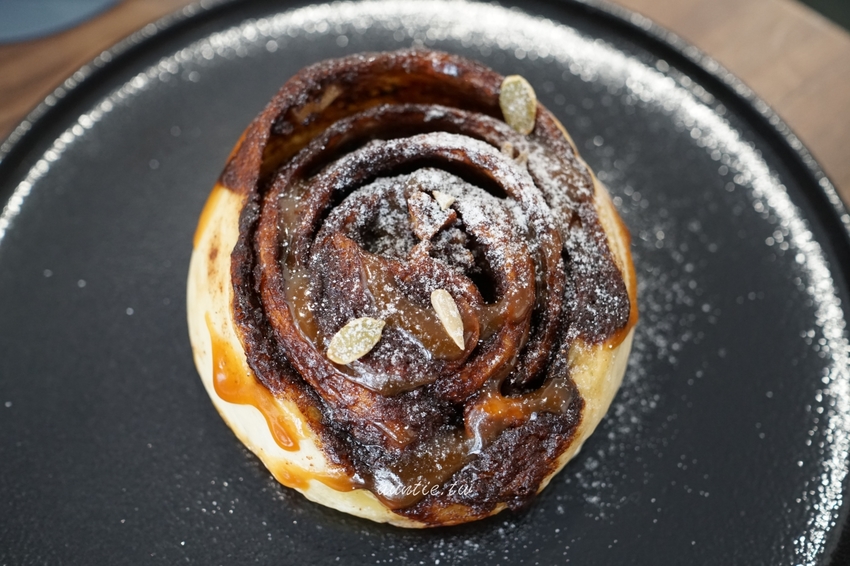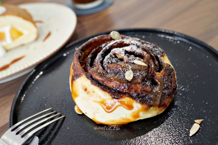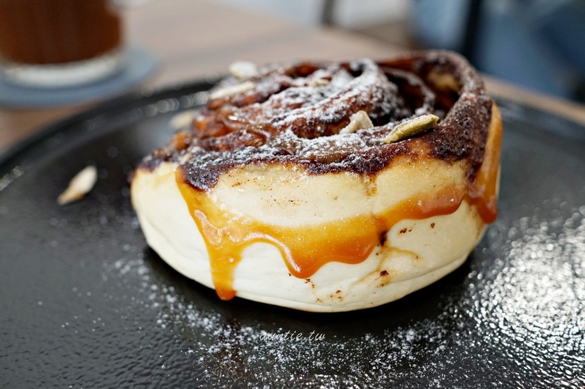 烤過的熱熱肉桂捲,就算冷掉後麵包的口感也不會變的韌韌的。吃起來肉桂的香氣超濃郁不說,還多了葵花籽跟堅果的脆脆的口感,肉桂捲必點必點!