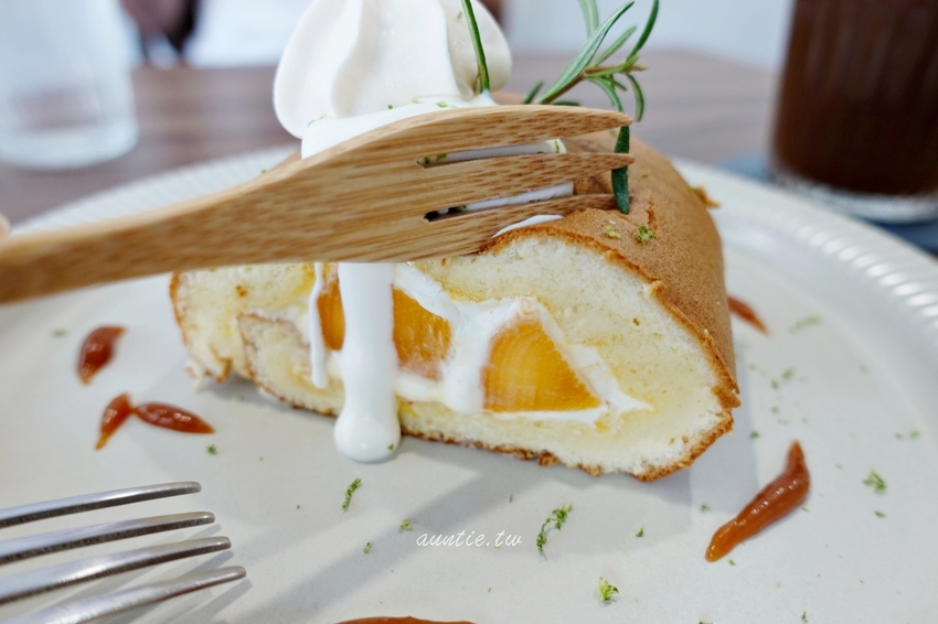 夏天看到芒果就想點!蛋糕捲的口感鬆軟細緻,奶油爽口又不膩口,搭配新鮮芒果味道未免太好吃,最上頭還有一顆蛋白霜,不過被朋友吃掉了,不知道味道如何,不過就蛋糕捲來說,真的好吃,必吃夏日限定的甜點!