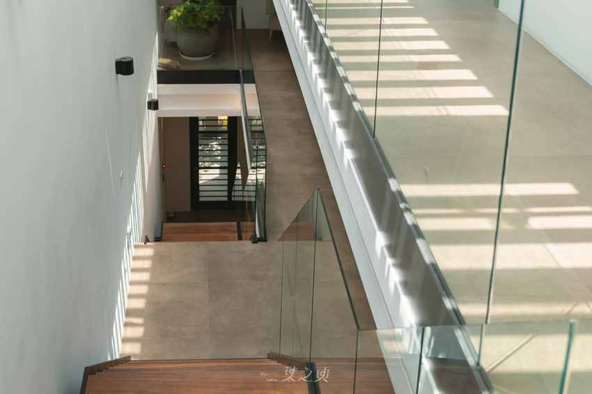 裝潢設計上還有一個地方特別喜歡:這座貫穿整棟樓的樓梯,讓樓層之間沒有界線,尤其早晨灑落的陽光,透過窗邊木條映成的光影令人心醉。這樣的美好光景讓我想起了幾句歌詞: