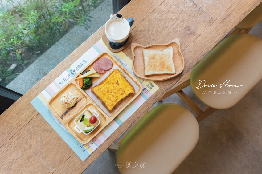 當然,各個角落皆充滿貓咪元素的朵麗絲的家,自然也不會放過早餐的(笑) 裝著咖啡、茶飲的馬克杯上面有隻貓咪慵懶的橫躺著;吐司的木盤、水果叉等也都是貓咪造型,在這裡就是做個徹底的貓奴,直到最後一刻都要被貓兒們包圍。