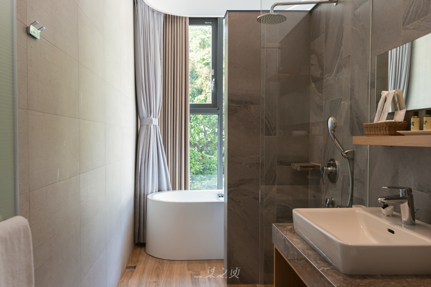 雖說是雙人房,但開放式的盥洗空間可能還是比較適合情侶一起入住吧(笑) 不過我更覺得也很適合一個人,好好地度假享受,或許坐在窗邊、伴著陽光靜靜地看一本書;也或許一邊泡澡一邊欣賞窗外風景,想來必定相當悠然。