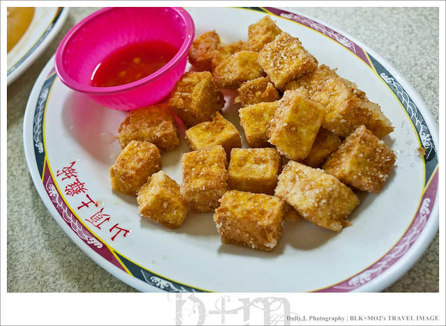 看似平凡無奇的「炸豆腐」也是這裡的招牌之一!桃桃跟桃媽還在研究為這麼簡單的雞蛋豆腐可以炸的這麼好吃!?裹上酥炸粉的雞蛋豆腐,嚐起來外酥內嫩,其外表酥脆的部分也是有味道的。