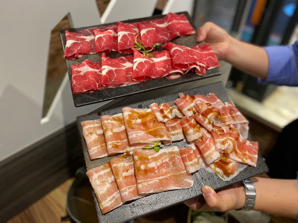 肉品點一盤牛肉一盤豬肉