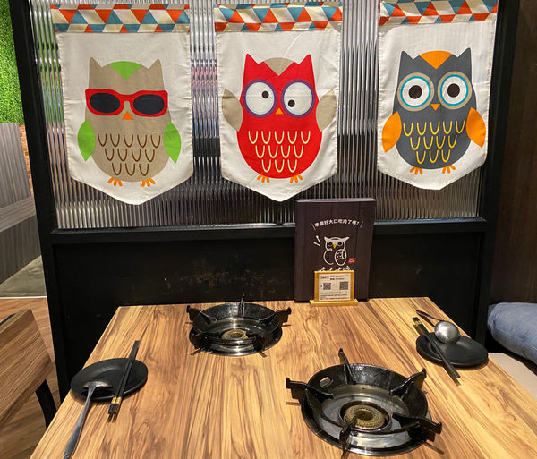 每桌旁邊的貓頭鷹長像都略有不同