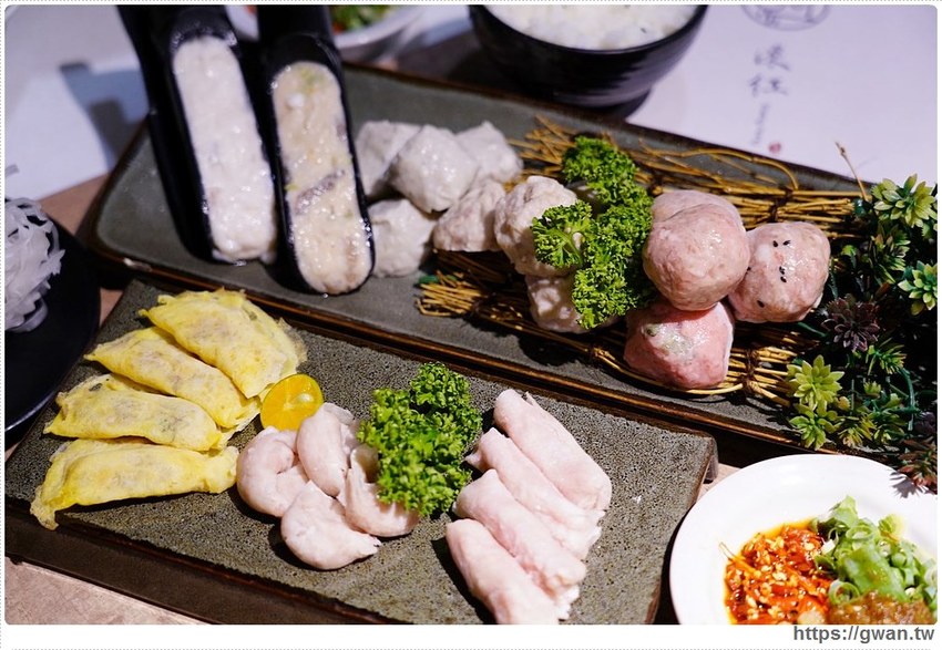 雖然我不愛火鍋料,但深紅的手工丸餃真的很不一樣,尤其咬下去還會噴汁的爆漿肉丸是我的心頭好!其他還有虱目魚丸、芋頭丸、手工魚漿、蛋餃、燕餃、魚餃都特別挑過,每種都很好吃
