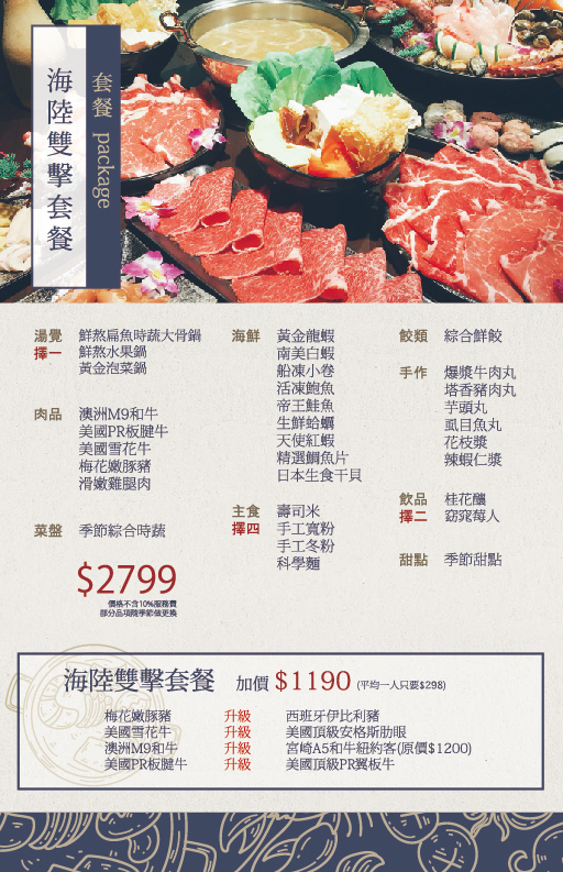 深紅火鍋振興券消費3000送1000 | 海陸雙擊套餐(四人份) $2799元