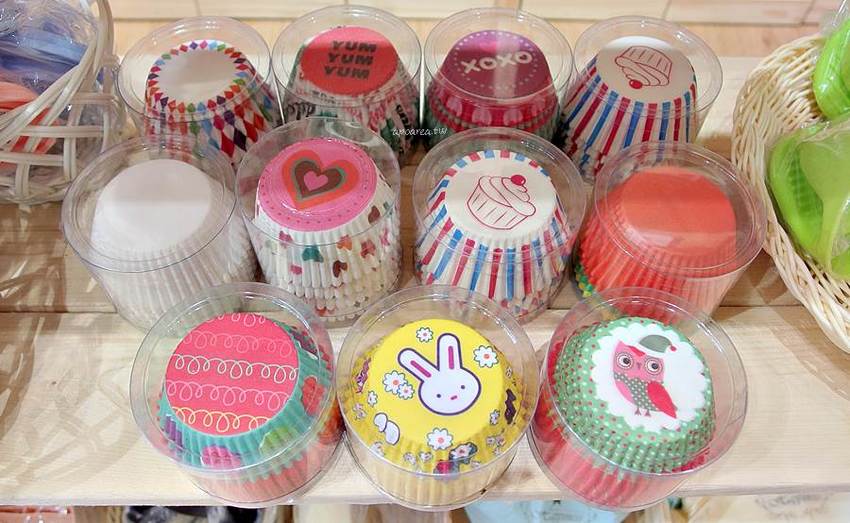 有繽紛圖案的蛋糕防油紙托也好多款式,一盒約100入33元,有愛心、兔子、貓頭鷹、蛋糕、曲線、圈圈、符號等也太可愛!可用於放置杯子蛋糕、大福或馬芬蛋糕等各種糕點,有可愛的紙容器盛裝也可以更顯甜點的美味!