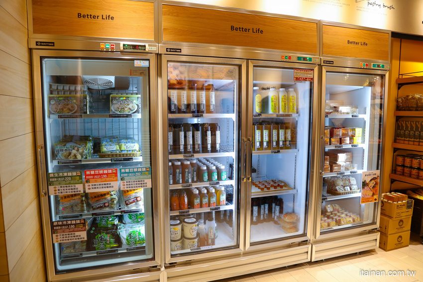 馬可先生健康烘焙金華店店面比較小巧一點,不過應有的品項也很齊全,除了養生麵包外,門市也有各式的健康食品跟健康零食,像是有料理用的橄欖油、調理用醬料、拌醬拌麵、彌月蛋糕與油飯、有機發芽濃豆漿&無糖茶,冷凍區有雜糧饅頭跟雜糧水餃,也有規劃了營養超市專區,提供各式營養師推薦的食品與堅果、燕麥奶、五蔬湯等。