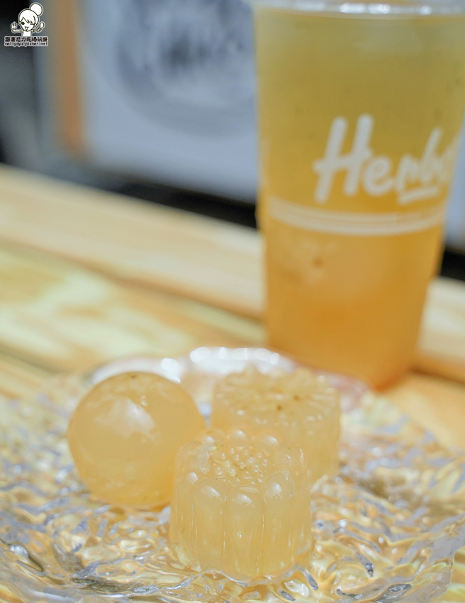 果凍帶有自然的甘菊香氣,讓茶飲順口好喝,添加滑溜脆度的寒天凍口感
