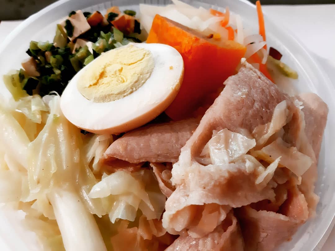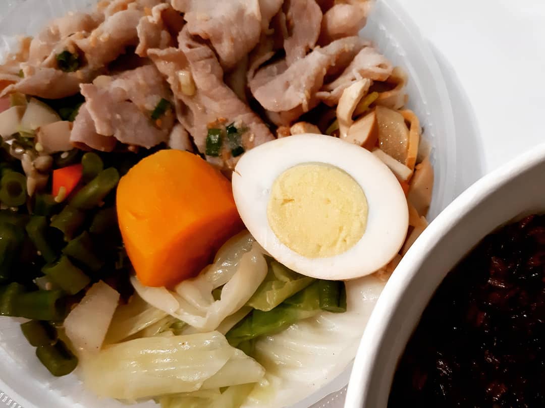 四大塊雞胸肉就這樣佔據便當一半的空間,沒想到雞胸肉不會很乾柴,加上地瓜以及三樣配菜半顆水煮蛋,吃完超級有飽足感。