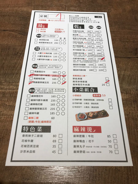小菜組合59元,因為A組合花椒牛腱、花椒百頁豆腐、沙茶米血賣完
