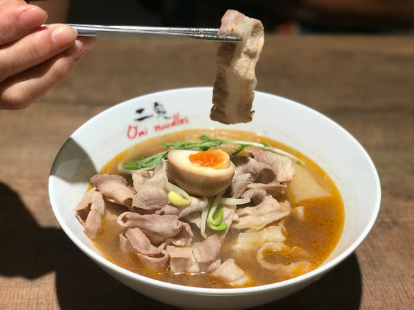 台北橋捷運站出來面對重新路左轉走一分鐘就到了二鬼拉麵