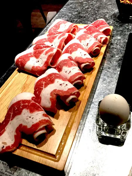 除了羊肉我們什麼肉都叫上了,當中最得我心的是豬五花,漂亮的油花涮過之後是鮮嫩的口感,再搭上麻辣鍋或養生鍋的香氣一樣好吃滑順!