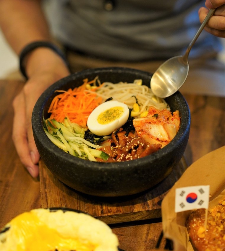 小點三選一,這次一樣選了超吸睛起司韓式蒸蛋,口感香濃滑順又好吃,味道上也不會過鹹,配上石鍋拌飯剛剛好!