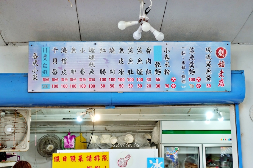 阿華鯊魚羹的餐點種類不少,雖然室內有座位,不過沒冷氣,真的很悶,大多數的客人都坐在戶外,還有點海風可以吹。