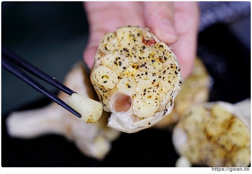 這裡的烤蒜頭也很特別,是整顆蒜頭切半下去烤,外面比較少見的做法,烤過的蒜頭少了辛辣味,鬆鬆綿綿帶點奶油與胡椒香
