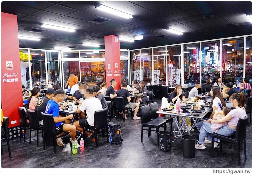 燒烤店的空間很大,佔地183坪還設有包廂,而且營業到凌晨2點(最後收客時間晚上12點),下班後想放鬆吃宵夜又多一個好選擇,室內還有冷氣開放,不用在路邊吃到大粒汗小粒汗,點幾份燒烤配啤酒,聚餐、吃宵夜都很方便