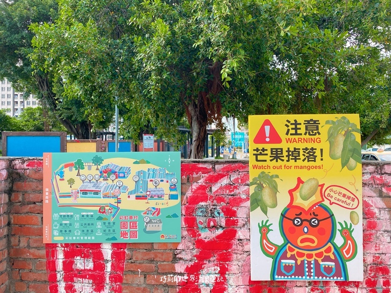 對了,我還發現一件有趣的事!就是彩虹眷村這裡不少告示牌寫著注意芒果掉落