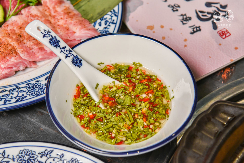 為主廚特調的咕咾醬使用醋、香菜、蒜頭和辣椒來調製,口味酸酸甜甜的很解膩,適合沾油脂較多的肉品,雖然有加辣椒,但只取它的香氣,所以不敢吃辣的人也可以沾。
