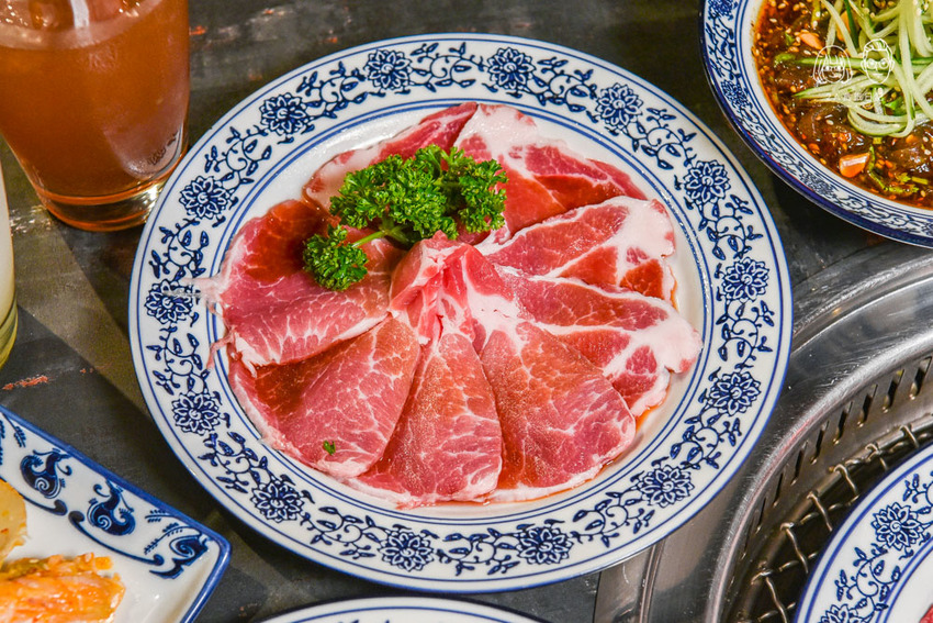 「墨妃家燒肉」的梅花豬也很厲害,經典梅花豬嚴選自台灣白豬跟黑豬結合的豬種,所以特別的新鮮不乾柴,淋上燒烤醬汁的梅花豬吃起來甜甜的,口感扎實保有彈性還很多汁呢!