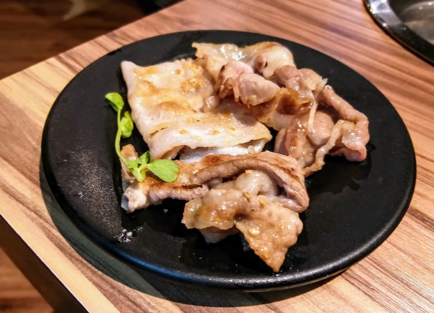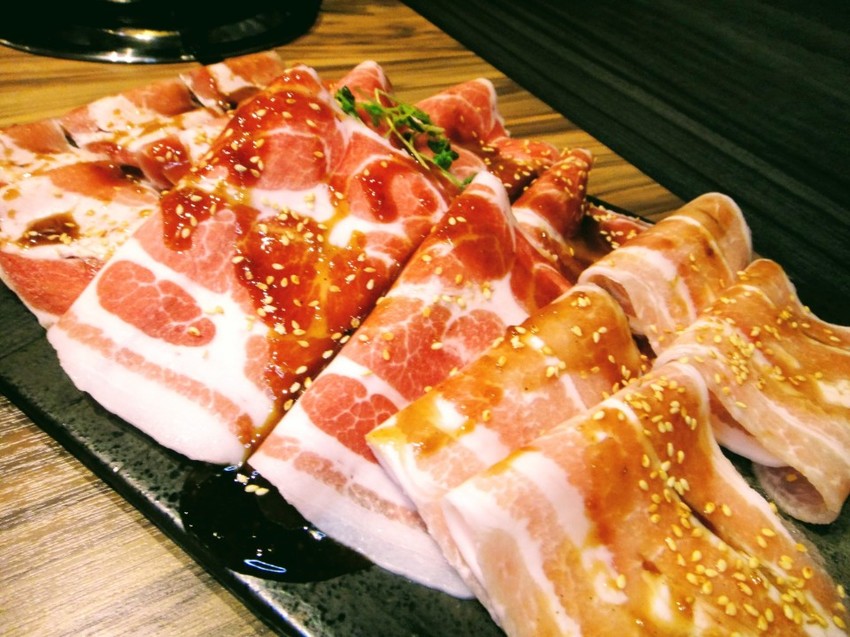 選擇搭配的肉盤是「3隻小豬」從右至左分別為松板豬、梅花豬、培根,這裡的烤肉都經過店家精心醃製,直接烘烤就很美味。