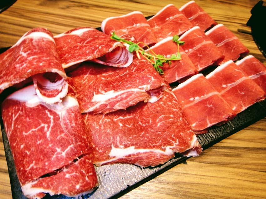 火鍋的肉片,選擇的是「極品牛雙拼」,右邊為沙朗牛,左邊為霜降牛,為120OZ。