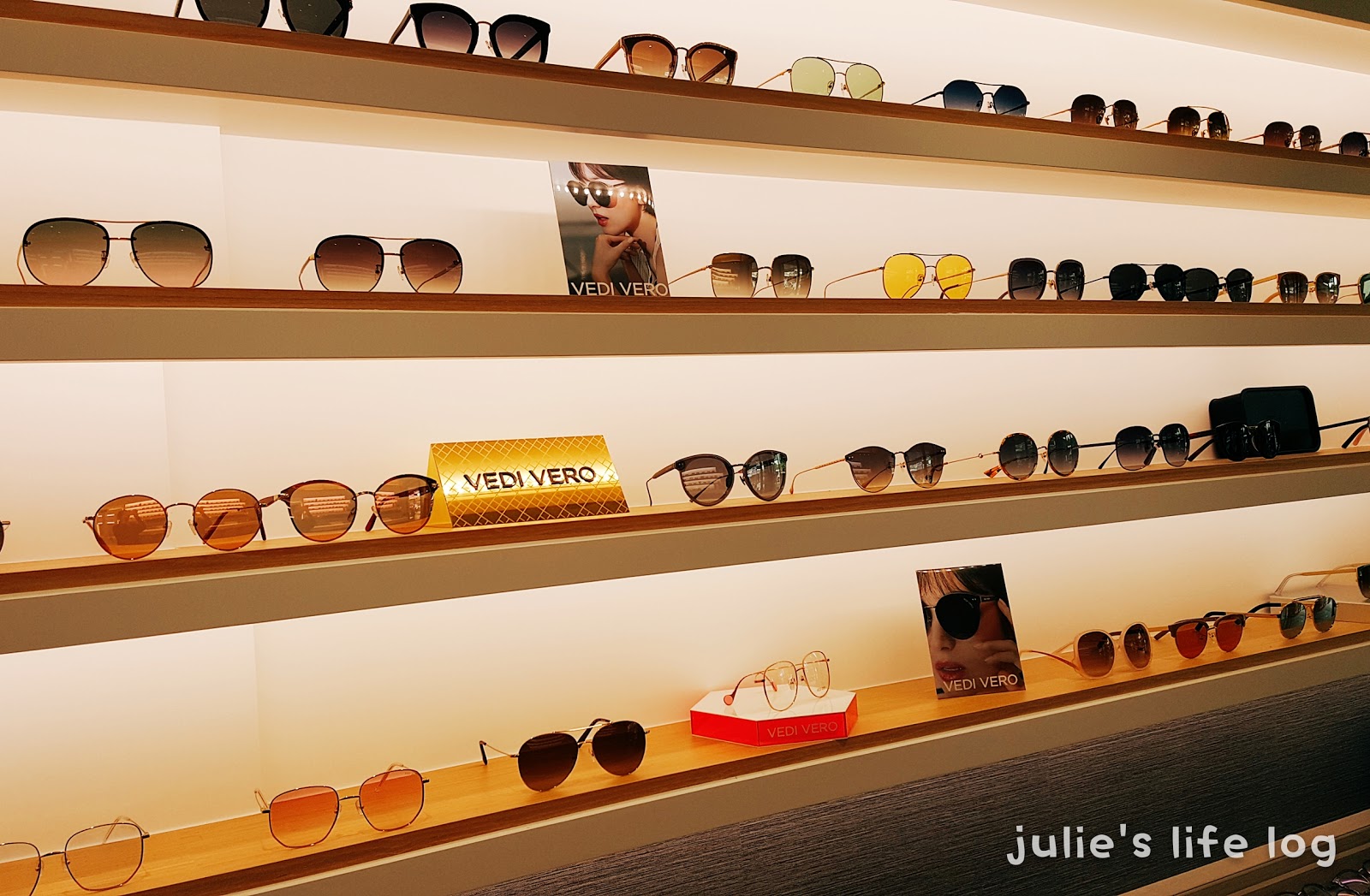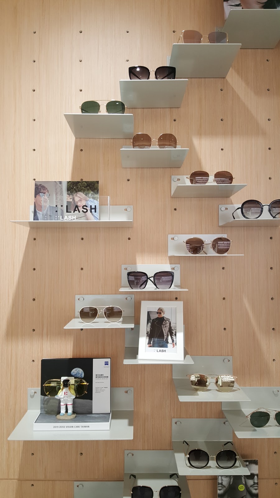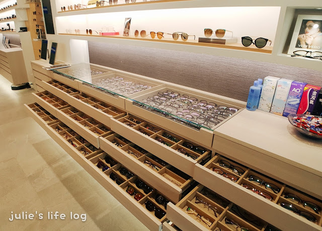 拉近看一下櫃上,我對眼鏡品牌沒有研究,但感覺得出來這些眼鏡、墨鏡很有設計感。