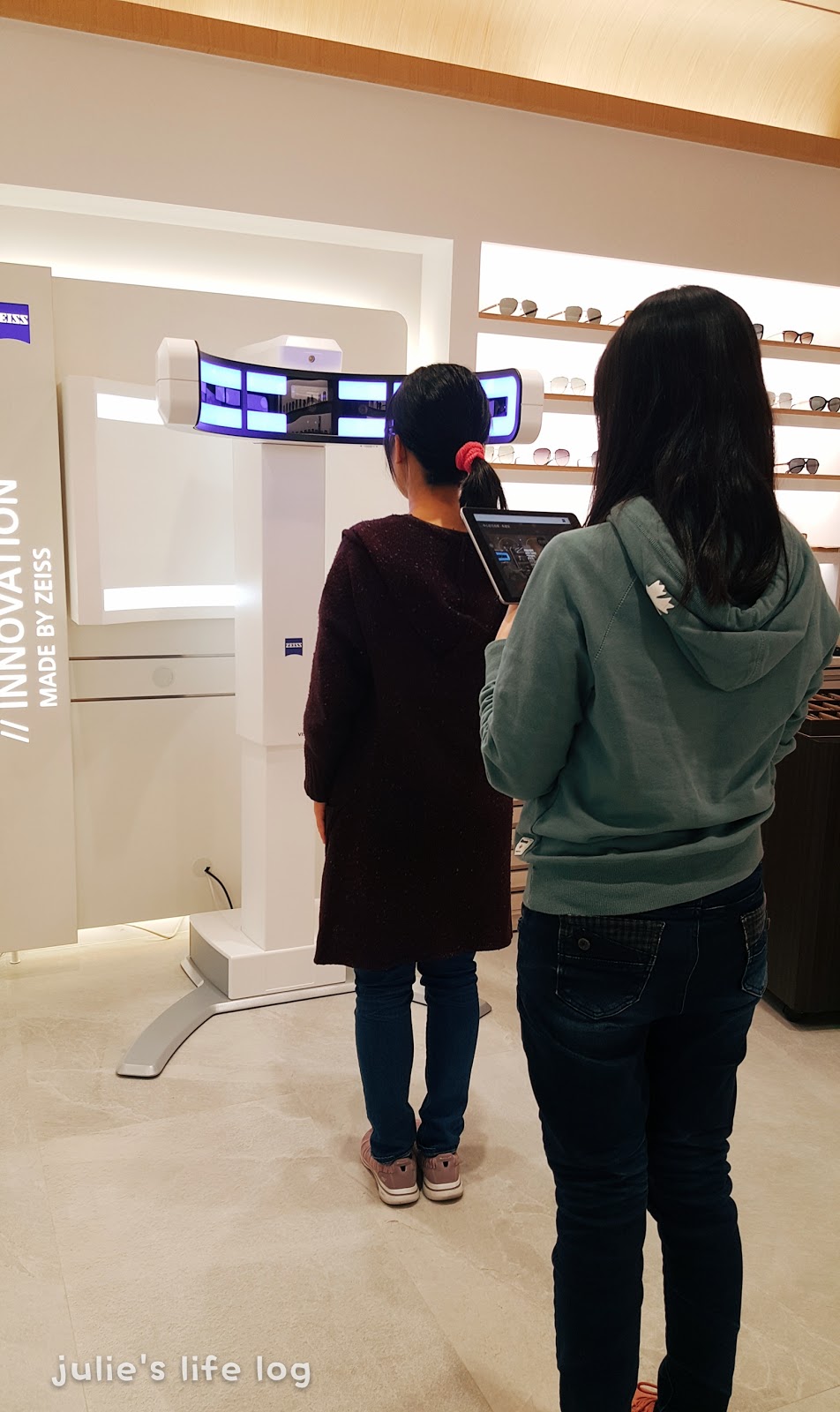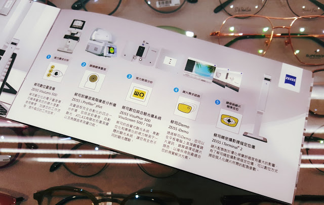 店面前半是百貨專櫃,後半部是全套蔡司設備專業驗光中心。鏡片度數是否精準,配戴是否舒適,對我來說比鏡框更重要耶!