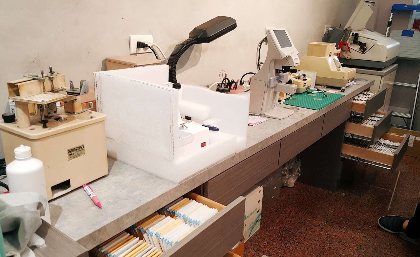 明格眼鏡從一開業就自己做鏡片研磨,如果客人需要的鏡片店內有庫存,當場就可以交件。常常有遠道而來的客人,驗光選好鏡框後,等待約20分鐘就可以帶著新眼鏡回家,不必再跑一趟,非常方便。