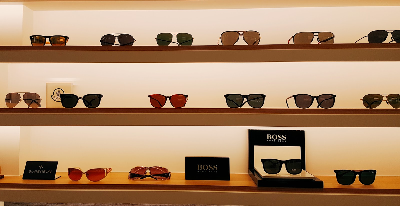兩側牆壁展示很多知名品牌的眼鏡、墨鏡,款式應有盡有。陳列櫃設計的很有質感,眼鏡擺放得從容,隨意逛逛很輕鬆。