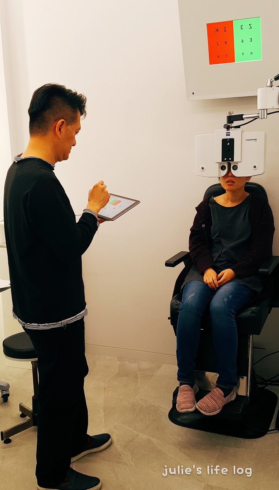 老闆先將我目前的眼鏡用儀器測量度數,可以先抓我大概的需求。2. 眼睛精準量度: