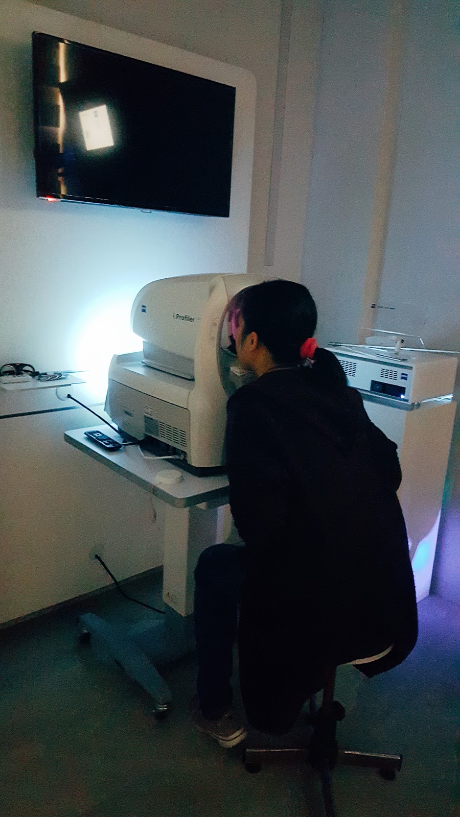 以前配鏡通常選完眼鏡和鏡片,就準備回家了,這次竟然還沒完。這個看起來很 high technology的設備是做什麼用的呢?