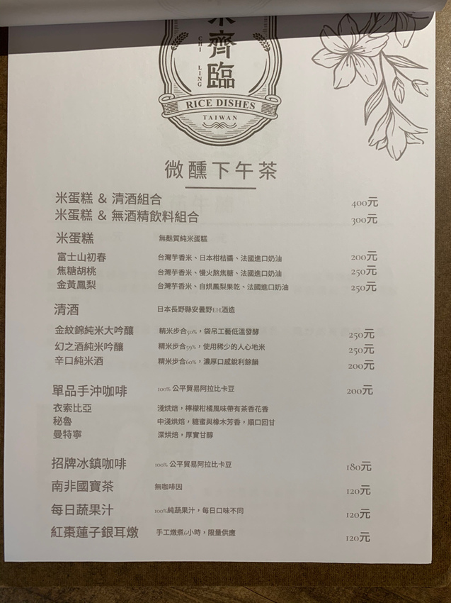 微醺下午茶有分2種組合,米蛋糕&清酒組合、米蛋糕&無酒精飲料組合,光是搭配清酒也太特別了