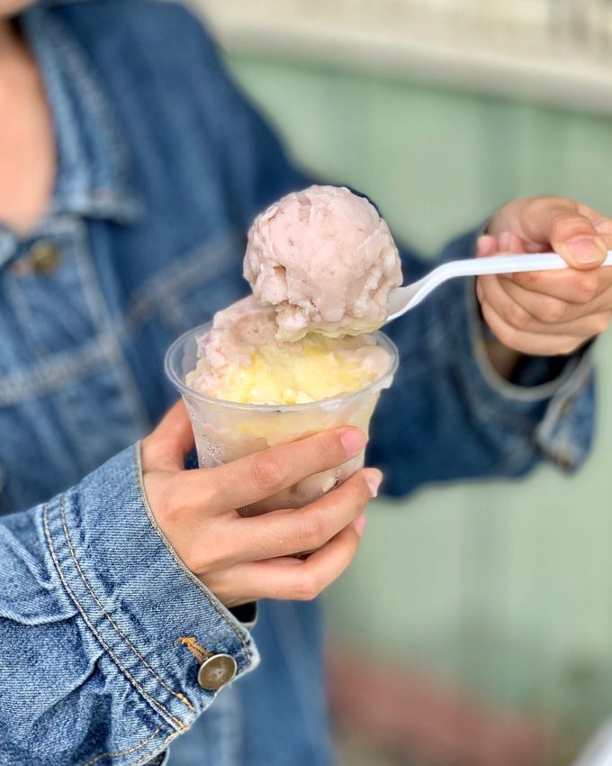 除了必點的芒果雙爽之外,也有多種口味的綿綿冰可以選擇,有大紅豆、綠豆、芋頭、鳳梨、百香果、烏梅,我們選了芋頭、鳳梨還有烏梅來試試,三大球只要40元很可以,非常傳統的味道,越吃越愛,下次想試試其他口味!