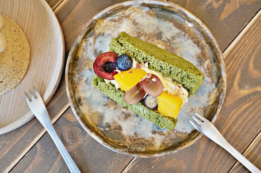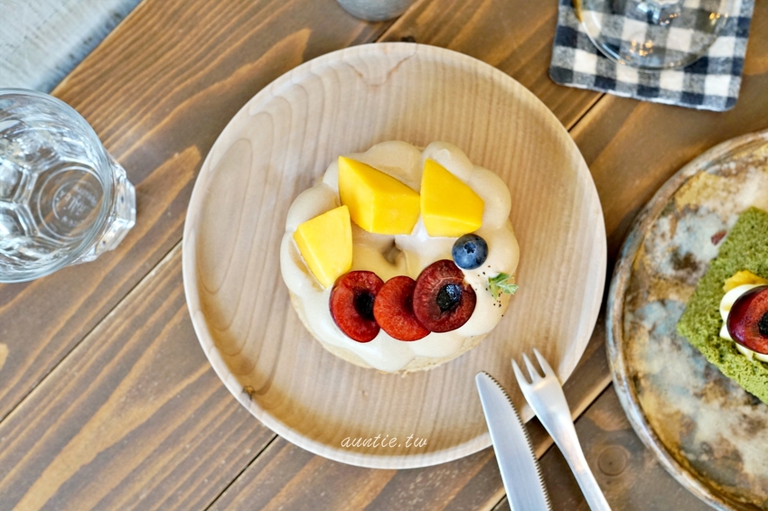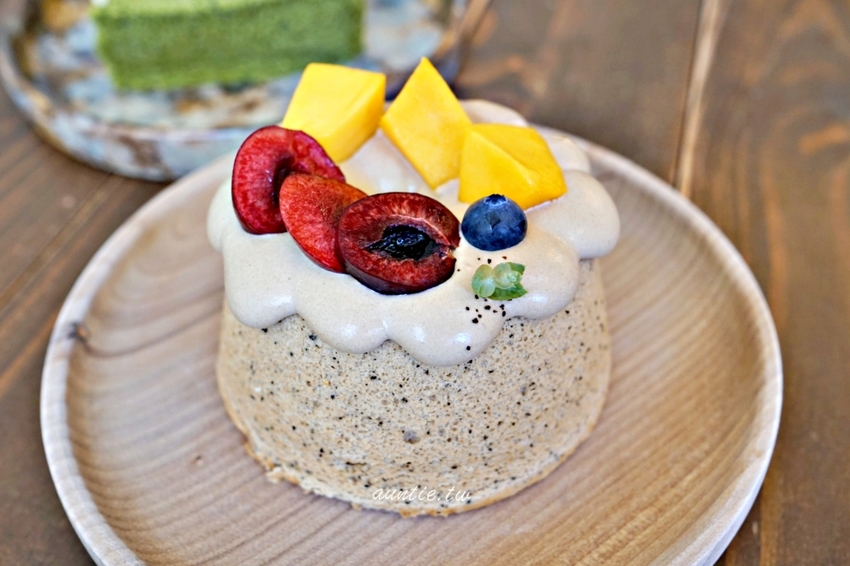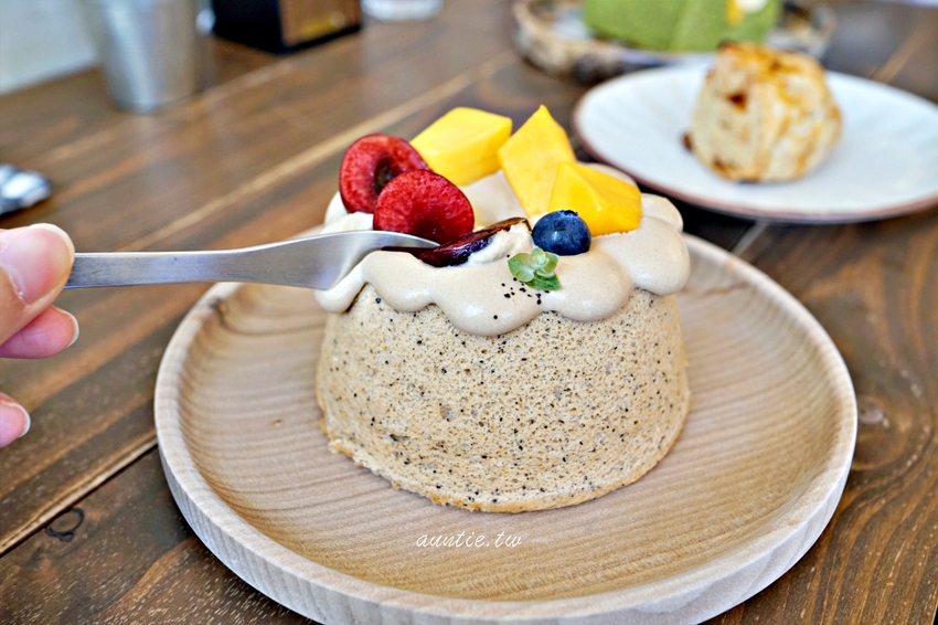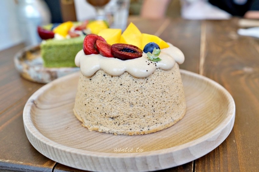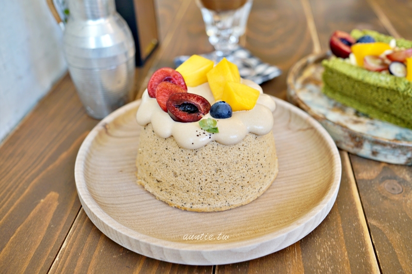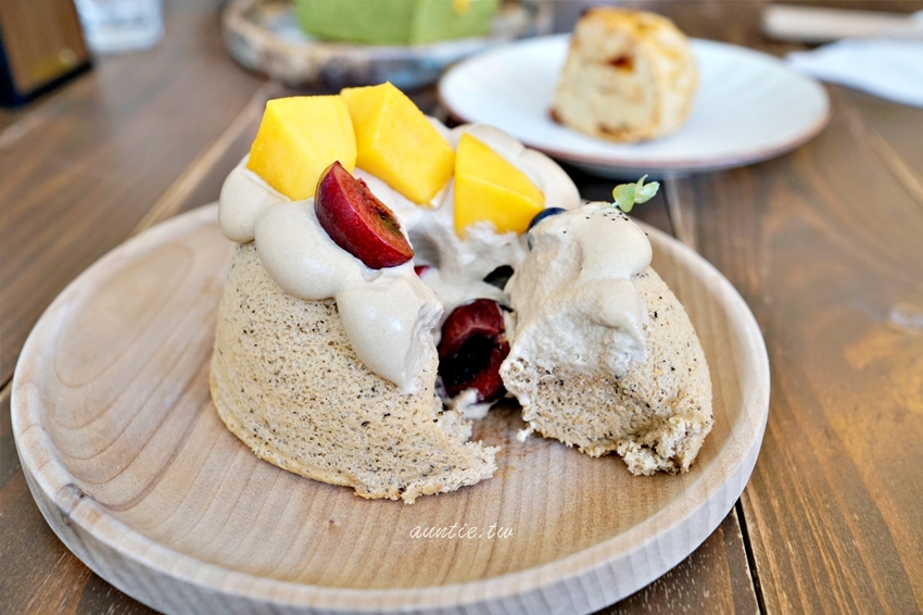 單吃戚風蛋糕口感很細緻軟綿綿的,其實不用加料真的就很好吃,不過搭配上新鮮水果又是不同的風味,點綴得像是可愛小盆栽一樣,伯爵茶口味帶著伯爵茶特殊的香氣,而且水果都是新鮮的不再另外刷上糖水,所以吃起來很清新,奶油部分也太好吃,整體搭起來100分!