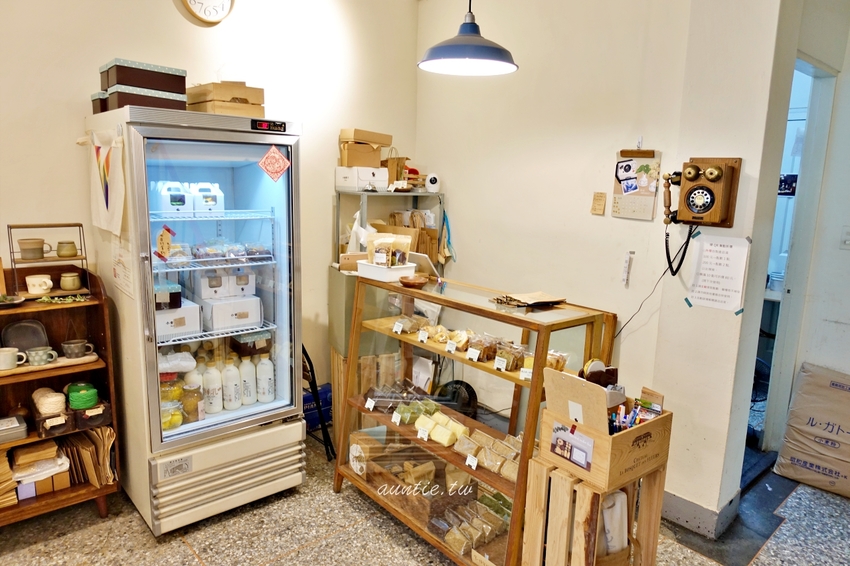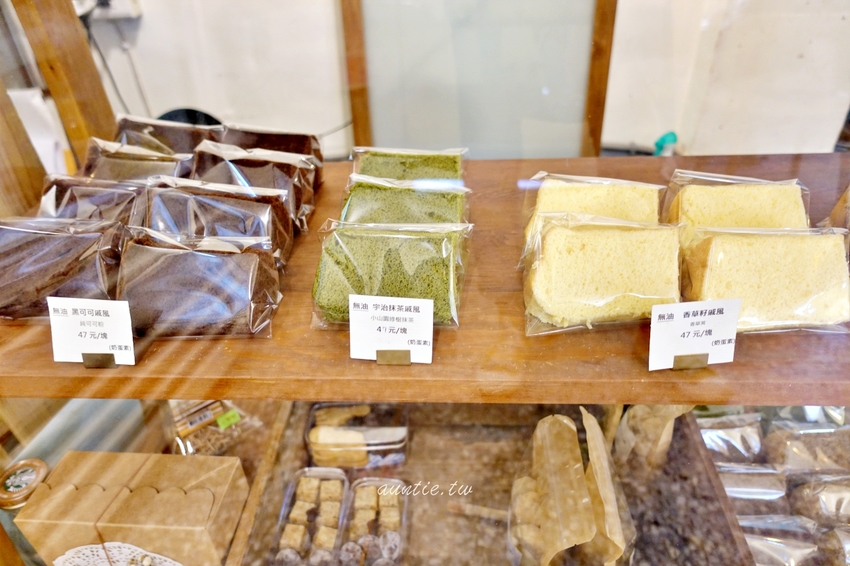 櫃檯裡滿滿的都是各種口味戚風蛋糕、磅蛋糕以及司康,一旁還有些杯盤小物,都是有在販售的。