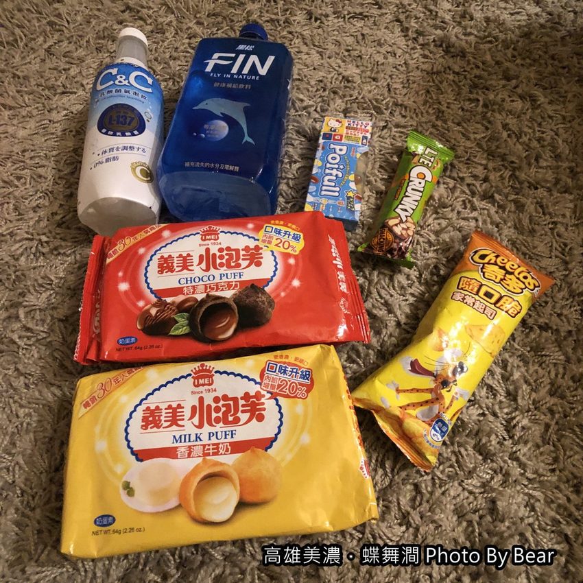 還帶了些餅乾、糖果和飲料,可以邊看影片邊吃