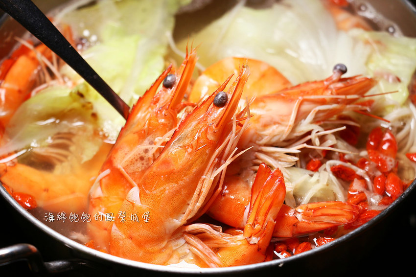 一次6~8隻蝦,這樣湯滾的時候才不會爆鍋!