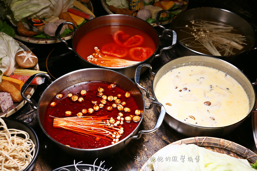 有牛肉、豬肉、雞肉、羊肉、海鮮、素食鍋