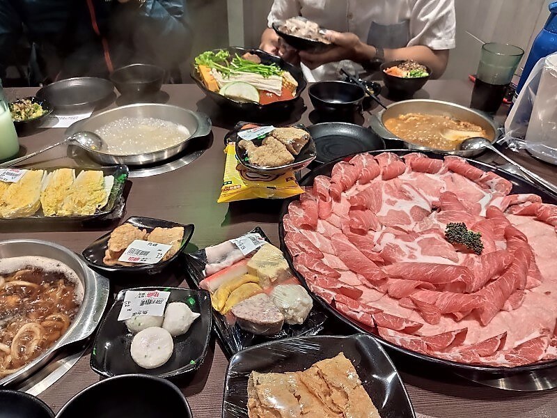 首先一進門,服務生就來招呼,帶位後先選擇湯底,再來就可以提著籃子去挑選自己想吃的食物去結帳後就可以去位子享用囉!今天選擇的是昆布,藥膳,及麻辣,湯底價格都是50 元。