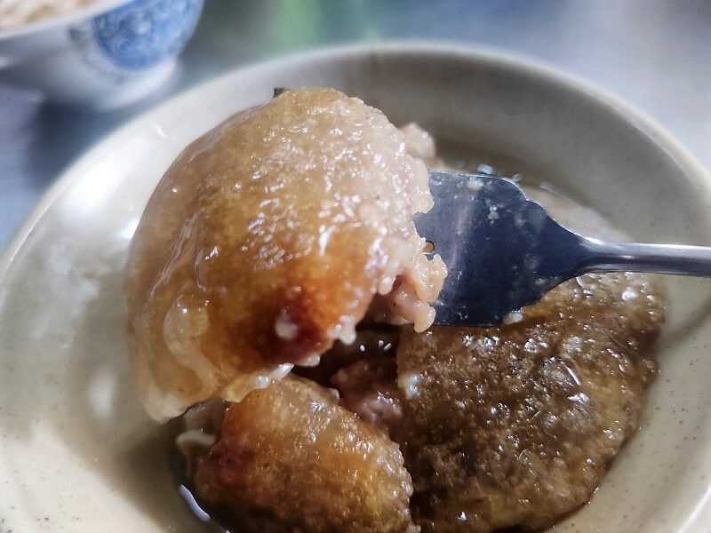 雖然味道不錯,但一顆百元的肉圓,個人覺得太貴XD,不過一樣有超多人捧場,喜歡這種油炸酥皮口感的肉圓,可以來嚐試一下。