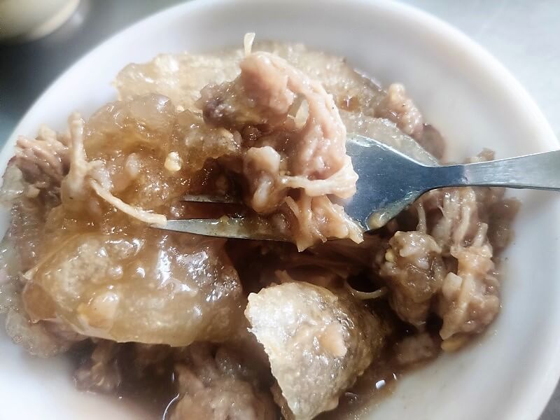 這個豬肚湯竟然也加了蛋花!雖然蜜蜜個人是很愛吃蛋,但這個湯頭和豬肚加了蛋,感覺沒有很搭呢…….豬肚倒是有軟,不過和龍骨髓湯一樣,不合我們胃口囉!