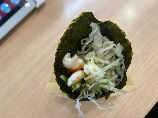 ↑鮮蝦手卷,新鮮現做,要趕緊吃不然汁會一直滴出來