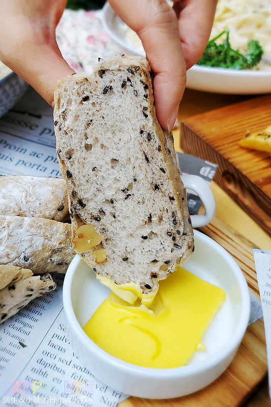 裸麥麵包裡頭有堅果和芝麻等健康的穀物,原本擔心麵包口感會偏乾,沒想到完全不會耶!吃起來口感鬆軟且帶點淡淡的甜味,也可以沾旁邊的奶油入口會更香。