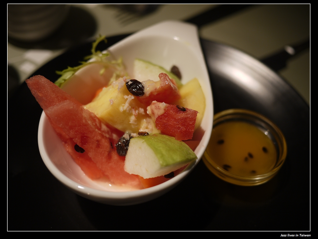 不過這回有試吃到了彩漾鮮果沙拉, 可以沾著百香果醬, 只是我還是習慣吃完主菜再吃水果啦!