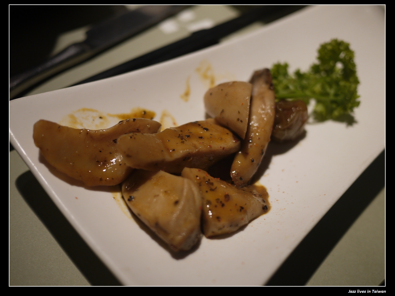 今天因為人多, 所以還試吃到了果香酥烤鴨胸, 這道服務員推薦7分熟, 不過實際食用覺得肉質已經乾乾的了, 醬汁很特別, 嚐的出來是奇異果調的醬汁, 還頗搭的,