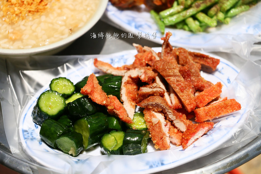 有鹹粥、紅燒肉、紅燒鰻、雞卷、蝦卷、雞腸、小黃瓜、筍絲....等