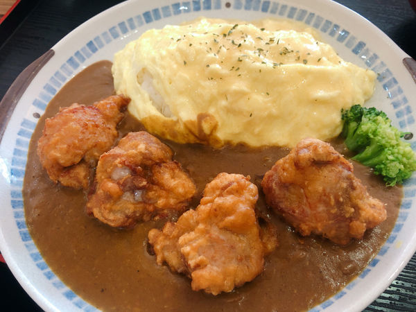 唐揚炸雞咖喱定食+蛋包( 180元+25元)一端上來就是讓人食指大開的視覺享受,感覺就是要加蛋包,他才圓滿,不過因為是友人點的,我品嚐到的唐揚炸雞沾咖喱醬,偏日式帶甜味的咖喱香氣,把唐揚炸雞整個口感包覆著,不過他們家的皮不是酥脆,比較像是裹一層薄薄炸粉,主要還是肉的厚度比較實在,雖然只有四塊,但每一塊都是很紮實喔!難怪看到上班族每桌都有他